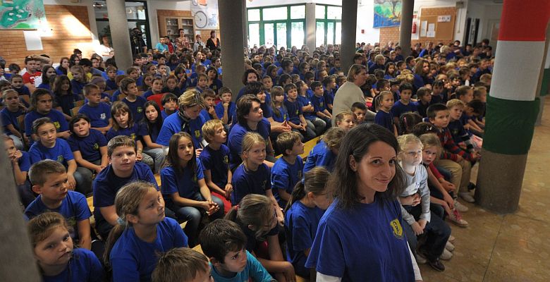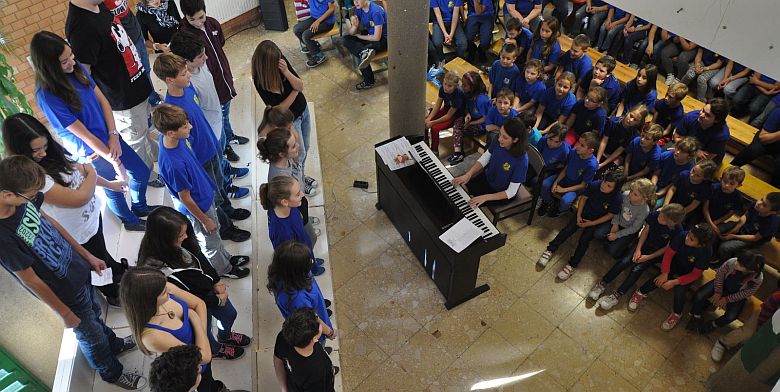 Zenei nyelvi vetélkedőt tartottak kedden délután a Kossuth Lajos Általános Iskolában, ahol az intézmény minden osztálya más-más nyelven énekelt el közösen egy dalt. A gyerekek zongorakíséret mellett, az énektanárokkal közösen adták elő a dalokat, amiket zsűriztek is, bár nem az volt a leglényegesebb, hogy ki nyeri a vetélkedőt. A rendezvényen az egyik legjobb dolog az volt, hogy az iskola összes diákja összegyűlt az aulában és a kicsiktől a nagyokig bezáróan mindenki figyelt egymás produkciójára.