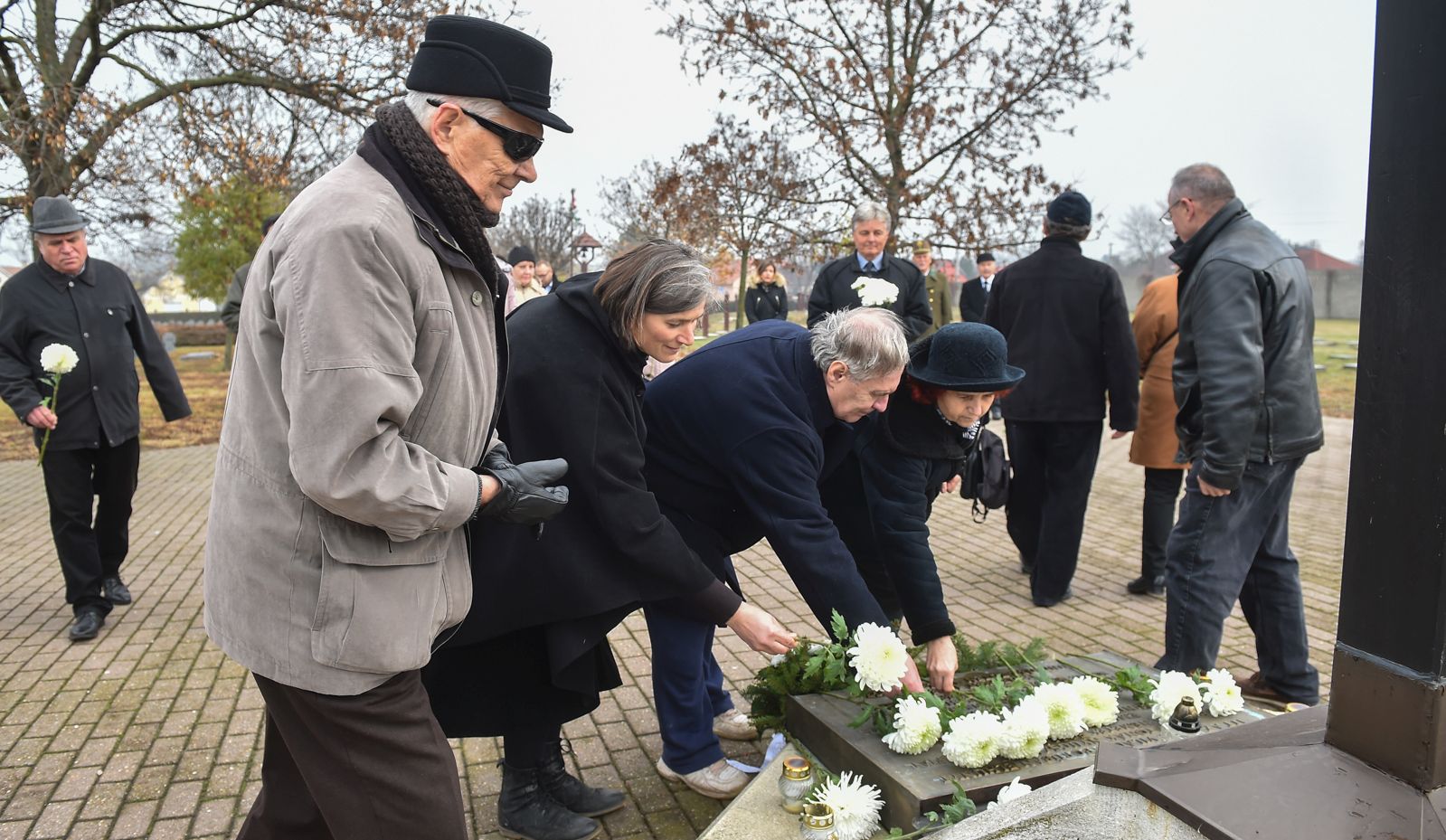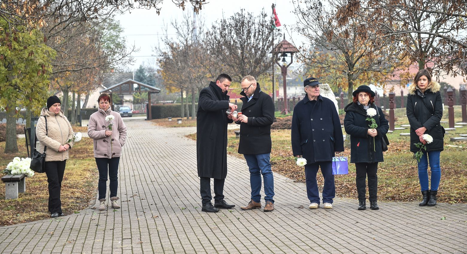 A temetőben nyugvó hősöket – akik tudják, hogy milyen értelmetlen volt a két világháború - arra kérte, imádkozzanak azért, hogy béke legyen ezen a földön, és a politikusaink le tudjanak ülni egy asztalhoz, és párbeszédet folytatva megoldani népeink sorsát, gondját, problémáját. Majd úgy fohászkodott: „Adja Isten, hogy Szent Márton vezetésével a béke harcosai tudjunk lenni!” Beszédét követően a jelenlévők közös imádsággal, majd a keresztnél koszorúk és virágok elhelyezésével, mécsesgyújtással emlékeztek az elesett katonákra.