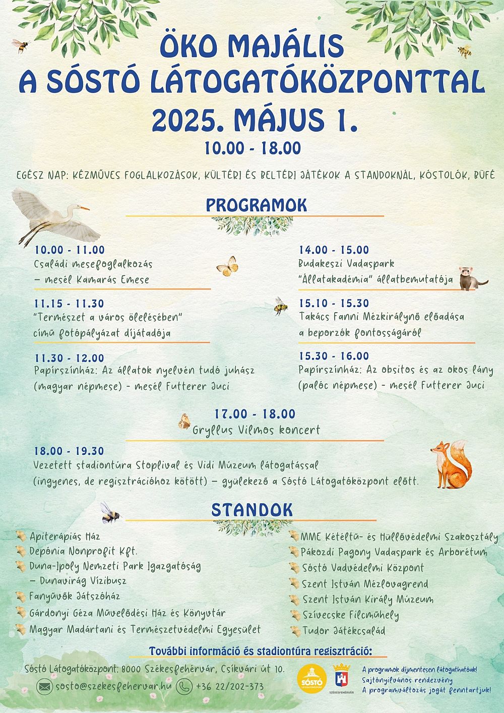 Lesz többféle kézműves foglalkozás, nyitva tart az öko játszótér, és színvonalas standokon mutatkozik be több, a környezet- és természetvédelemmel, kultúrával foglalkozó szervezet és intézmény. Az Öko Majális keretében, 11.15 órakor hirdetik ki a „Természet a város ölelésében" című fotópályázat eredményeit. A programokra díjtalan a belépés, szeretettel hívnak és várnak minden érdeklődőt!