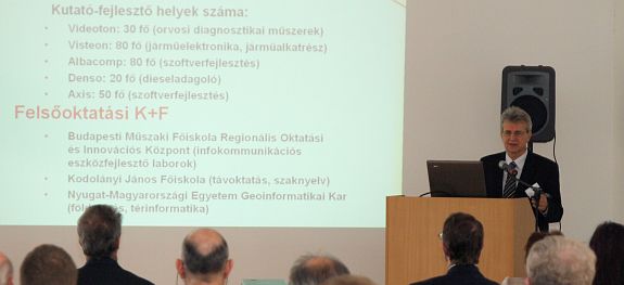 A rendezvény szünetében tartott sajtótájékoztatón szó volt arról is, hogy hogyan tud segíteni a regionális innovációs ügynökség egy-egy innovatív termék megvalósításában a tervezéstől a gyártáson át a piacra való bevezetésig - mondta Dr. Szépvölgyi Ákos a Közép-dunántúli Regionális Innovációs Ügynökség ügyvezető igazgatója.