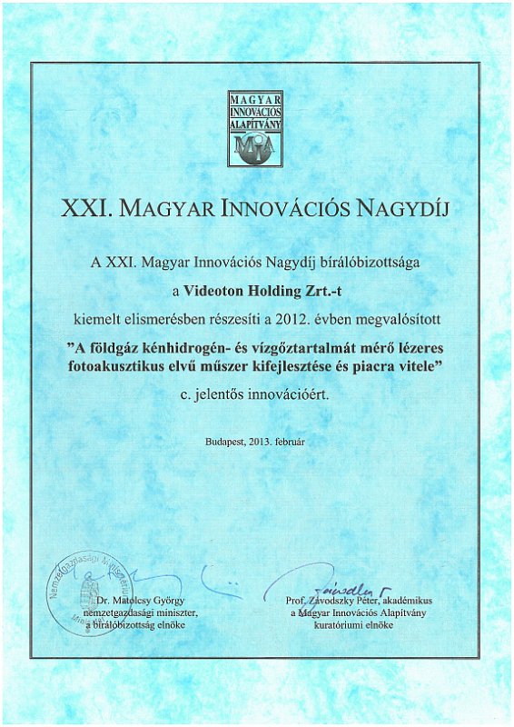 A XXI. Magyar Innovációs Nagydíj bírálóbizottsága kiemelt elismerésben részesítette a Hilase Kft. földgáz kénhidrogén- és vízgőztartalmát mérő lézeres fotoakusztikus műszerről szóló pályázatát. A díjazott mérőműszert a Szegedi Tudományegyetem (SZTE) és MOL közös szabadalma alapján a Hilase Kft. és Videoton Holding Zrt. fejlesztette ki.
