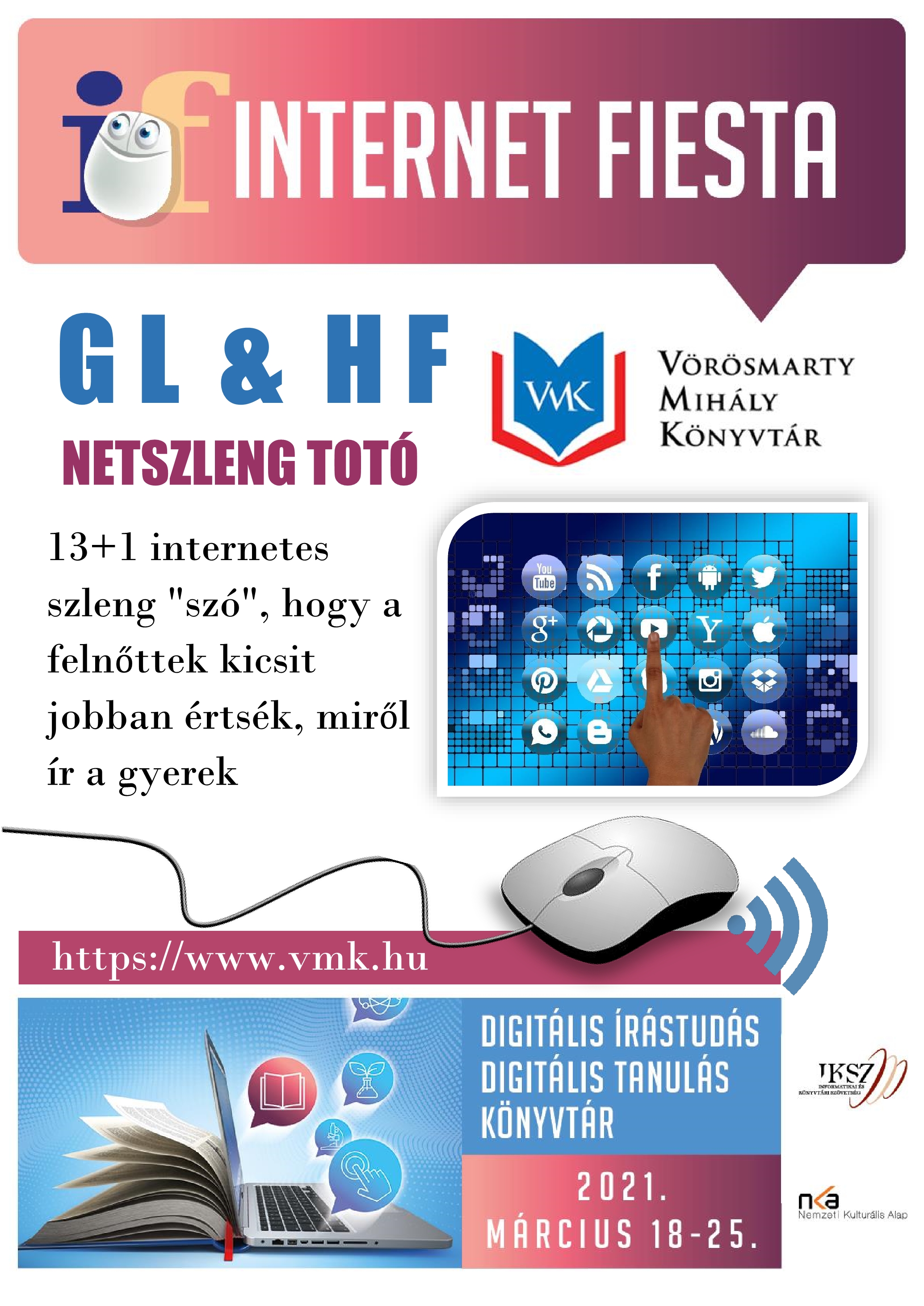 A Vörösmarty Könyvtár szervezésében többek között netszleng totó, Jankovich Ferenc íróval kapcsolatos online kvíz és netikett totó is lesz.