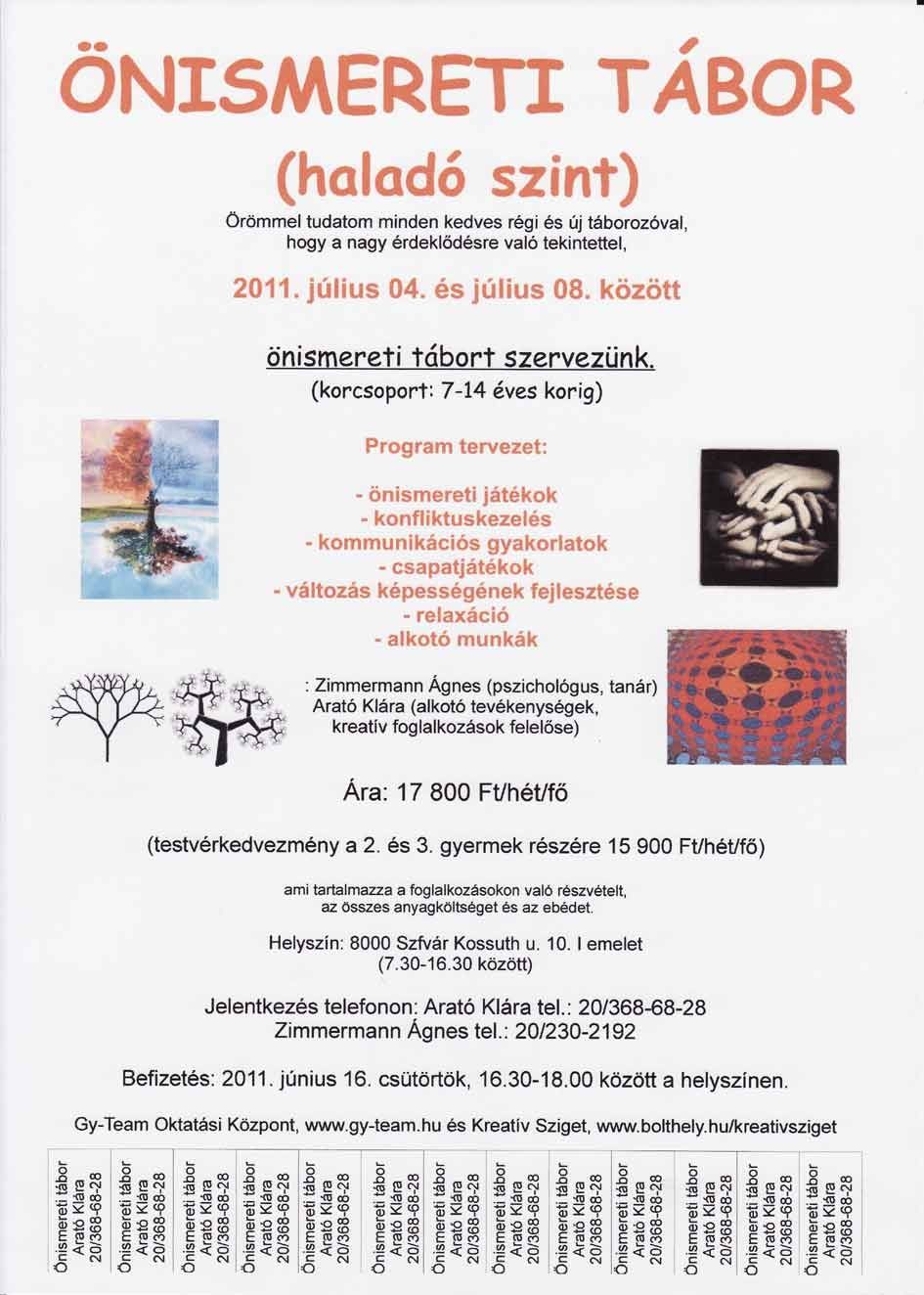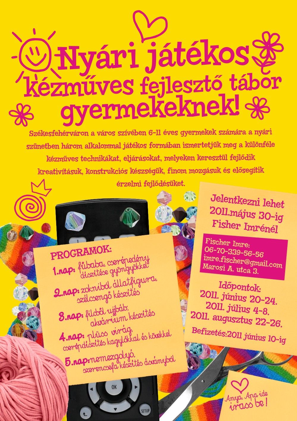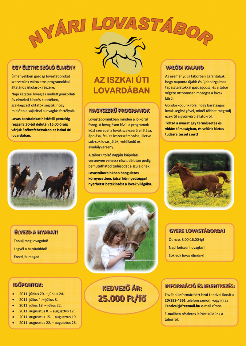 Több mint két tucat tábort kínálnak a Székesfehérváron működő közművelődési intézmények, egyesületek, civil szervezetek a nyári időszakra. Ajánlatuk rendkívül bőséges, a sport, a kézművesség, a színjátszás, az olvasás, a filmkészítés éppúgy szerephez jut, mint az önismeret, a matematika, a földrajztudomány, valamint az állat- és természetvédelem. A gyerekek kóstolót kaphatnak a meseírásból és a rádiózás világából. Aki hasznosan és tartalmasan szeretné tölteni a szünidőt, biztosan megtalálja a megfelelő ajánlatot.