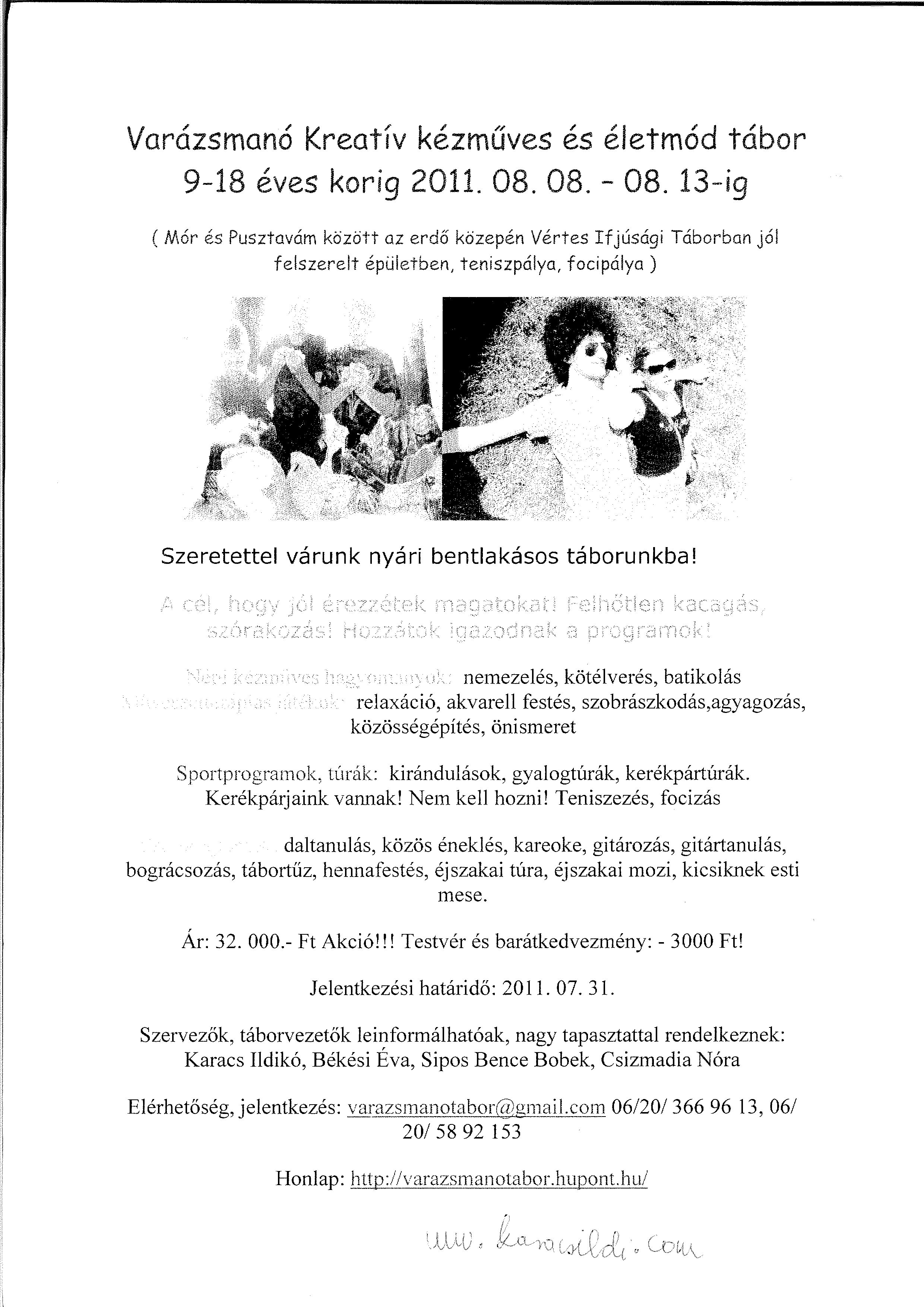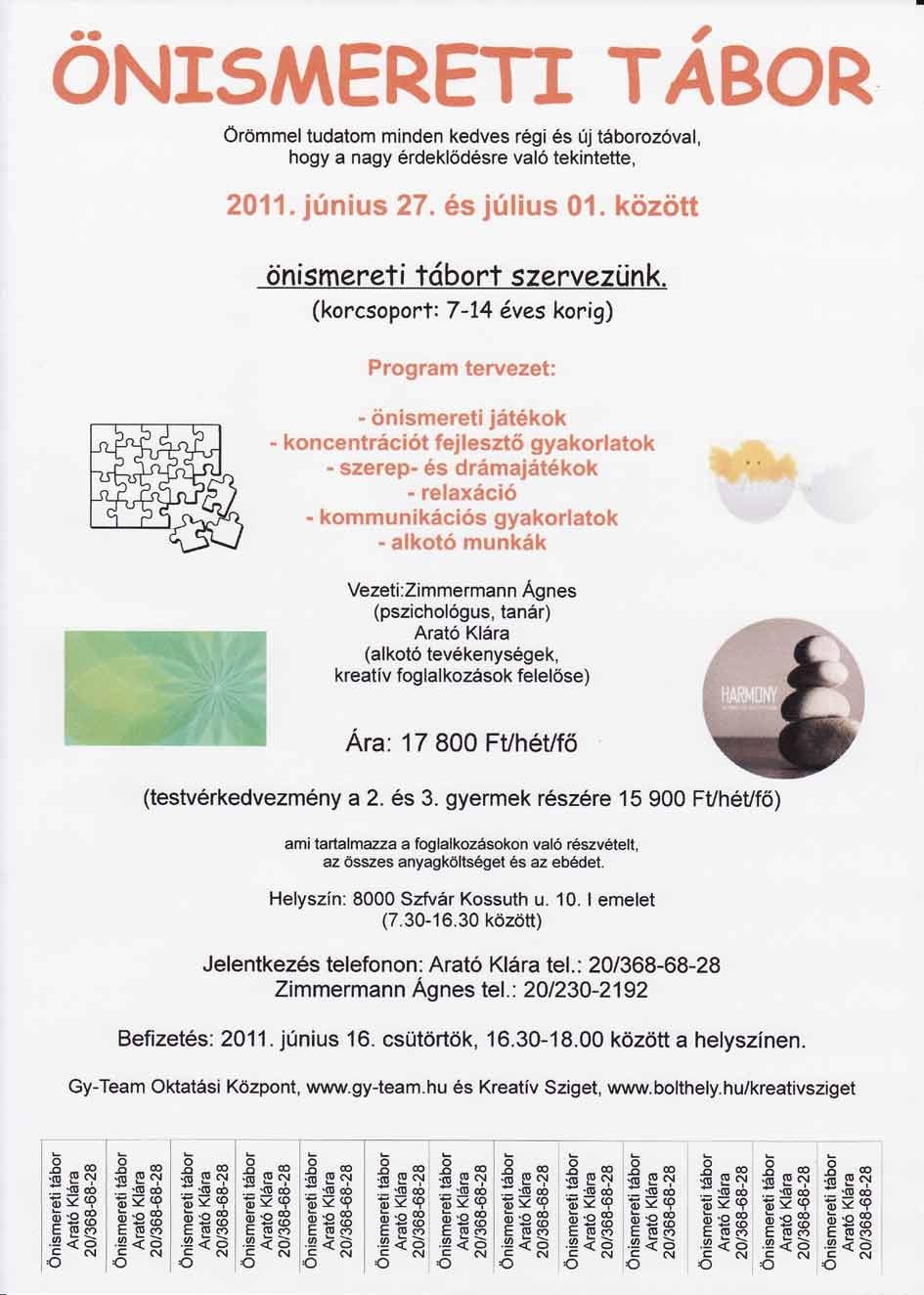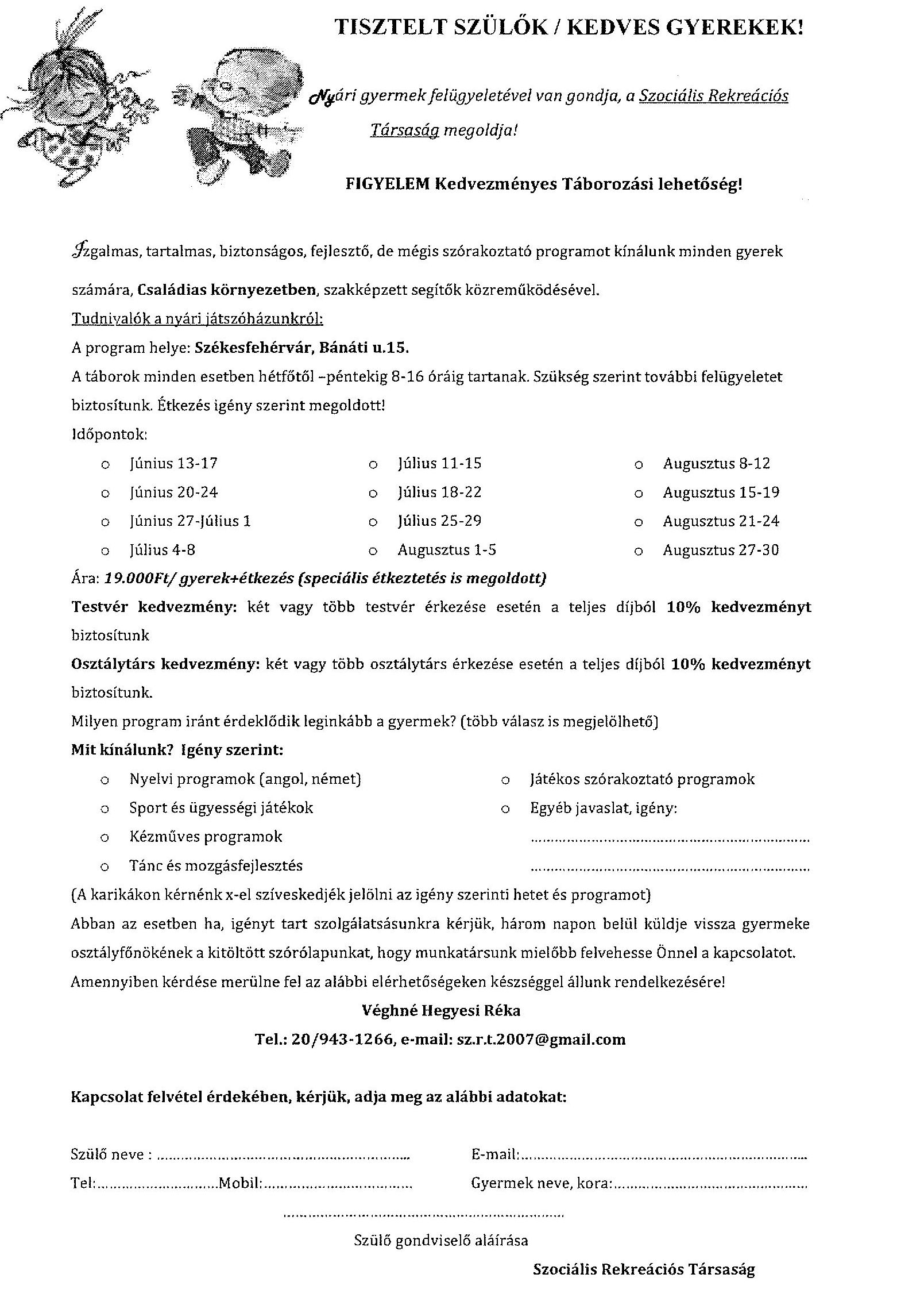 Több mint két tucat tábort kínálnak a Székesfehérváron működő közművelődési intézmények, egyesületek, civil szervezetek a nyári időszakra. Ajánlatuk rendkívül bőséges, a sport, a kézművesség, a színjátszás, az olvasás, a filmkészítés éppúgy szerephez jut, mint az önismeret, a matematika, a földrajztudomány, valamint az állat- és természetvédelem. A gyerekek kóstolót kaphatnak a meseírásból és a rádiózás világából. Aki hasznosan és tartalmasan szeretné tölteni a szünidőt, biztosan megtalálja a megfelelő ajánlatot.