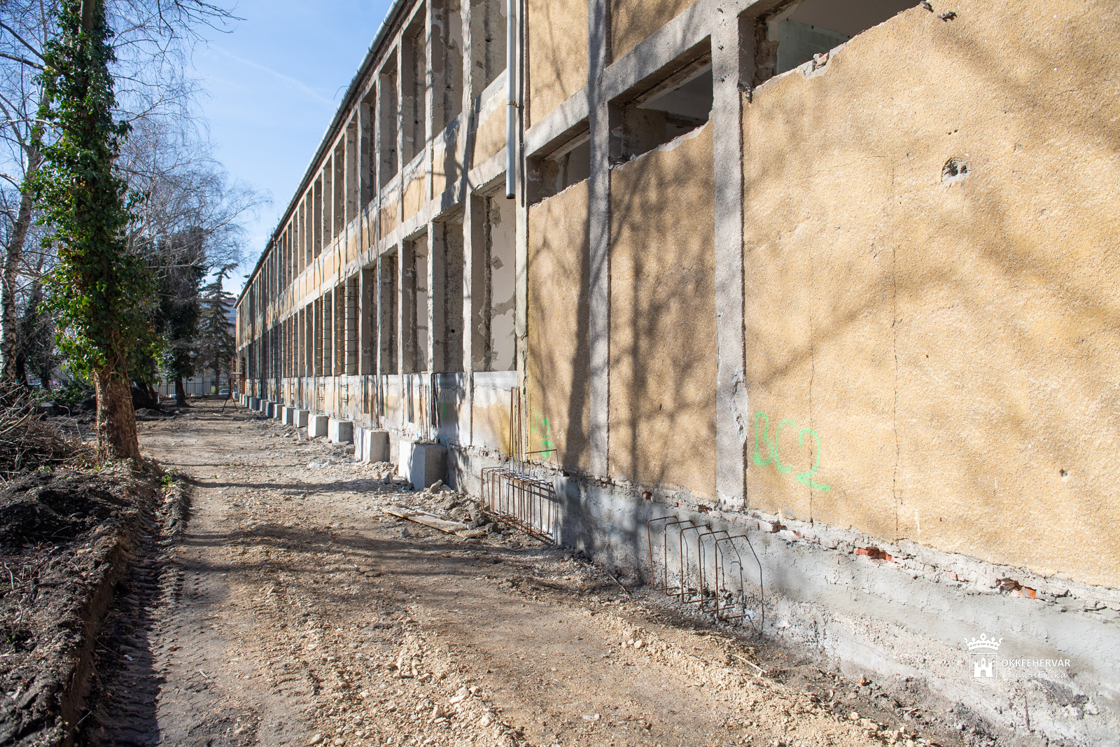 Közben zajlik a teljes felújítás a volt Ybl Miklós Általános Iskola teljesen önálló épülettömbjében is, melyet a szomszédos Kodolányi János Gimnázium befogadására kell alkalmassá tenni. A felújítási munkálatok tavaly szeptemberben indultak el a szükséges bontásokkal, ezt követően a tartószerkezeti megerősítés vette kezdetét, mely jelenleg is tart. Ennél az épületnél mintegy 50 szakember dolgozik, a beruházás a tervezett ütemtervnek megfelelően zajlik.