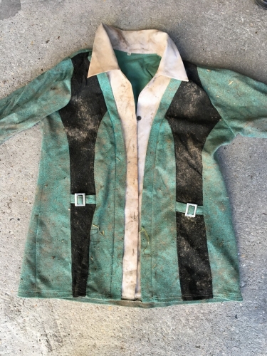 A rendőrök a helyszíni szemle során lefoglaltak egy nagyméretű, zöld színű, váll és oldalrészen fekete csíkkal, a gombrésznél és gallér résznél fehér szegéllyel ellátott inget.