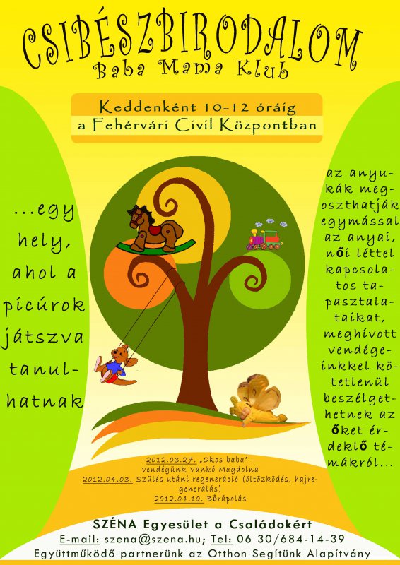 Ismét megnyitja kapuit a "Csibészbirodalom", ahol változatos programokkal várják a 0-3 éves apróságokat és anyukájukat, minden héten kedden 10-12 óráig, a Fehérvári Civil Központban (Rákóczi út 25.) a SZÉNA Egyesület és az Otthon Segítünk Alapítvány közös szervezésében.