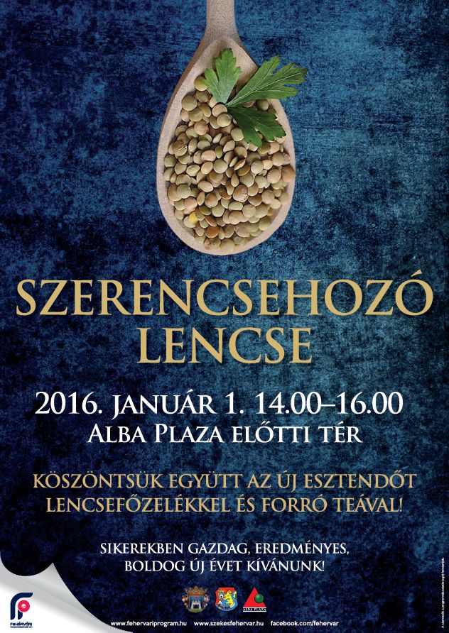 Bőséget hozó lencse főzelékkel kínálják a fehérváriakat az új esztendő első napján, január 1-jén, pénteken 14 órától az Alba Plaza előtti téren. A magyar néphit szerint, ha szeretnénk egész évre szerencséssé és gazdaggá tenni magunkat, mindenképpen érdemes lencséből készült ételt fogyasztanunk az új esztendő első napján.