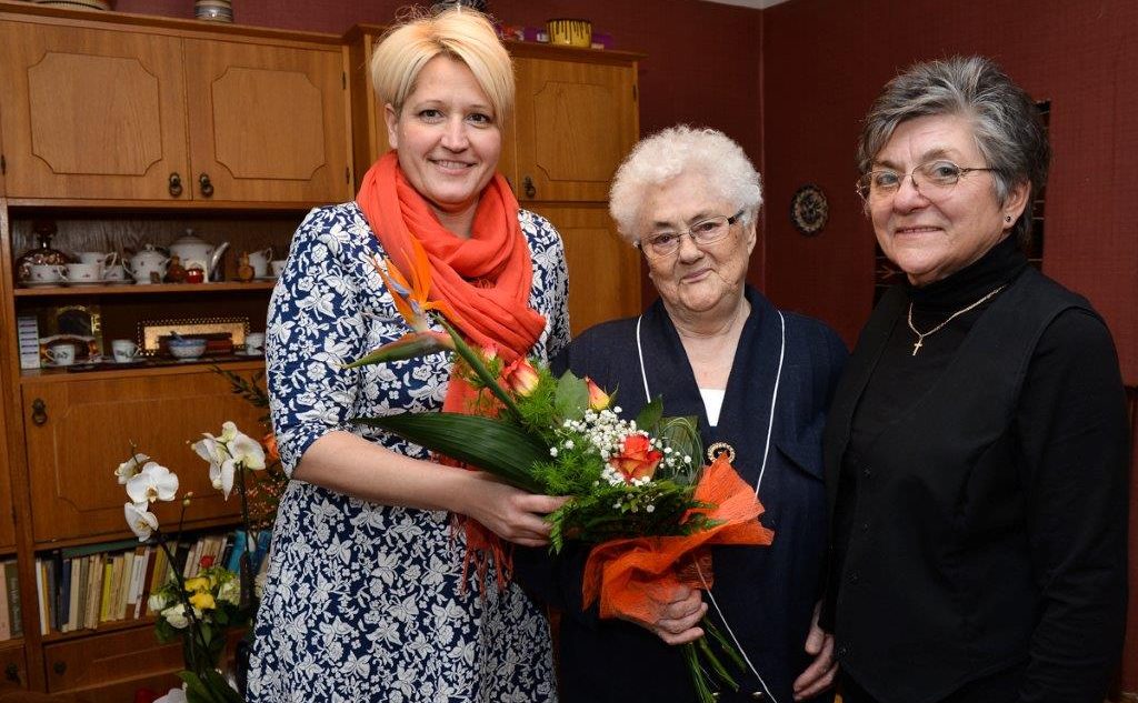 Az önkormányzat nevében köszöntötte ma Deák Lajosné, a körzet képviselője a 90. születésnapját ünneplő Királyfalvy Lászlónét. A családi összejövetel vasárnap volt, akkor még nótáztak is. Erzsi néni azonban ma sem maradt egyedül. A köszöntésre eljöttek barátok, ismerősök, és a legkisebb leánytestvére, Mária is.