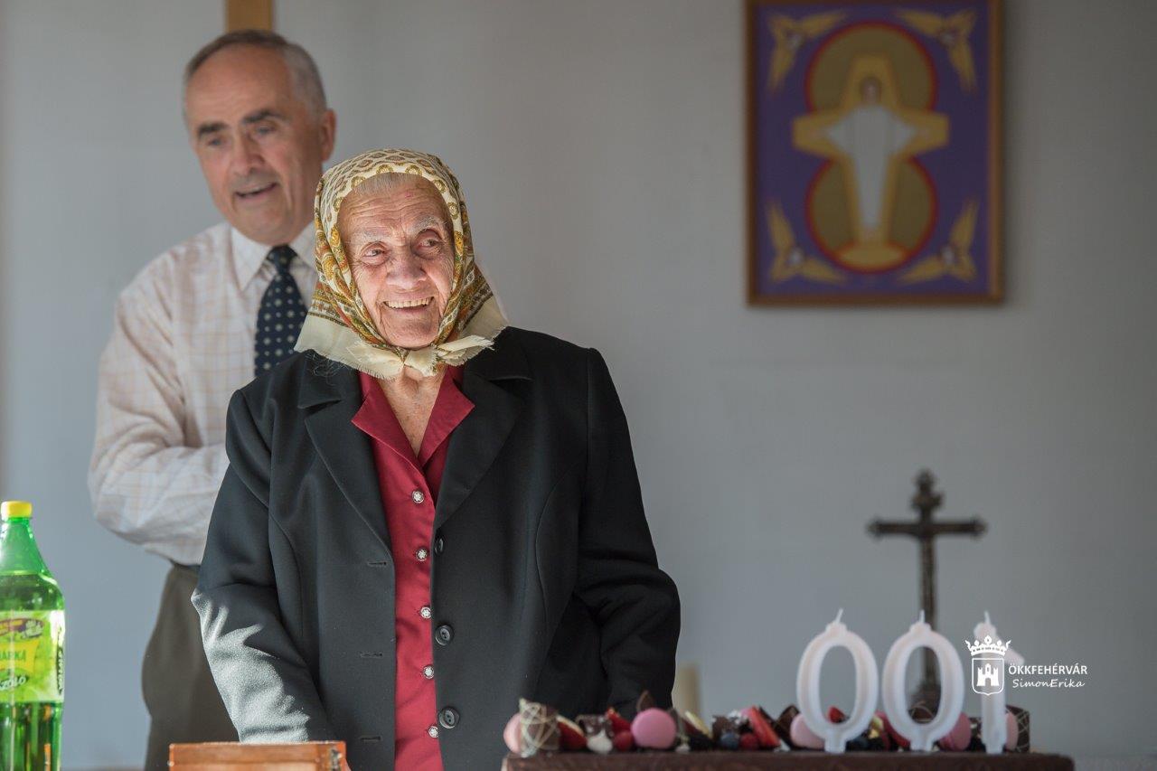 A 100 éves ünnepeltet dr. Cser-Palkovics András polgármester köszöntötte a város nevében, és adta át jókívánságai mellett az ajándékcsomagot és a miniszterelnök által aláírt emléklapot.