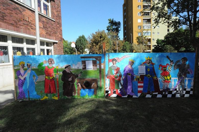 István király törvénykezése - játszóház a Széna Téri Általános Iskola előtt