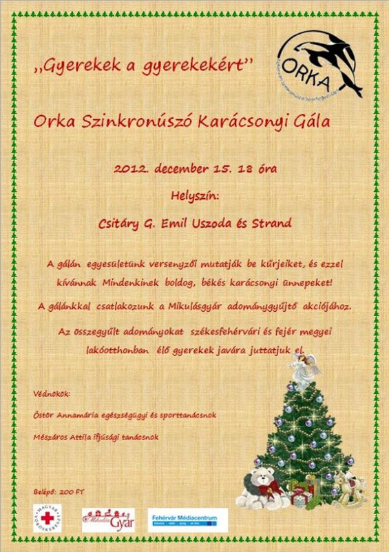 A hazai mezőnyben a Honvéd kupán remekeltek a fehérvári lányok, 5 első, 1 második és 3 negyedik helyet szereztek kezdő és junior páros kategóriában. Eközben Prágában a Christmas Prize elnevezésű nemzetközi versenyen is bizonyíthatták képességeiket az Orka fiataljai, 16 ország 31 klubjának szinkronúszói között. Ez volt az első alkalom, hogy a nemzetközi mezőnyben szerepeltek, az erős riválisok között 10. helyen végeztek.