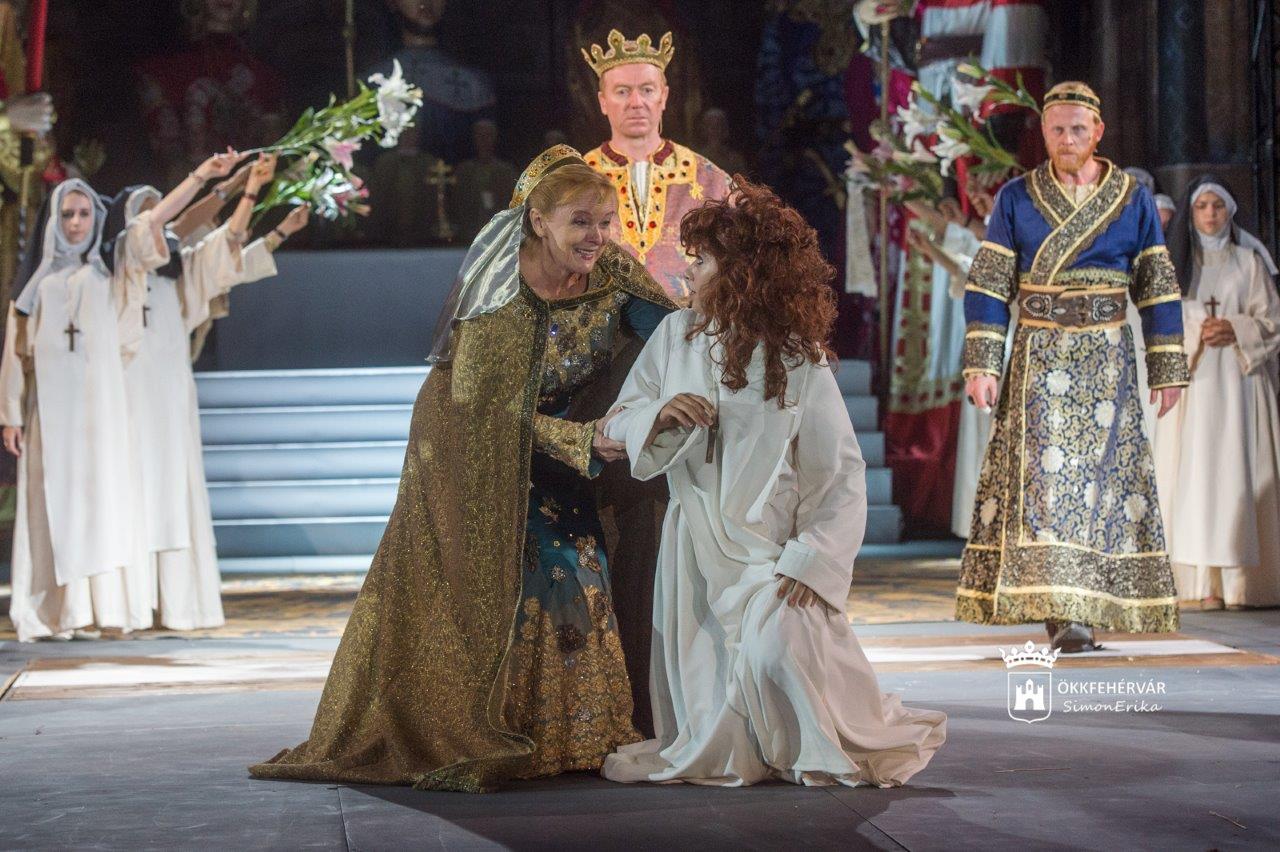 Az egykori koronázótemplom helyén felépített grandiózus szabadtéri színpadon augusztus 17-18-19-én, szombaton, vasárnap és hétfőn mutatják be a nagyközönség előtt a koronázási szertartásjátékot.