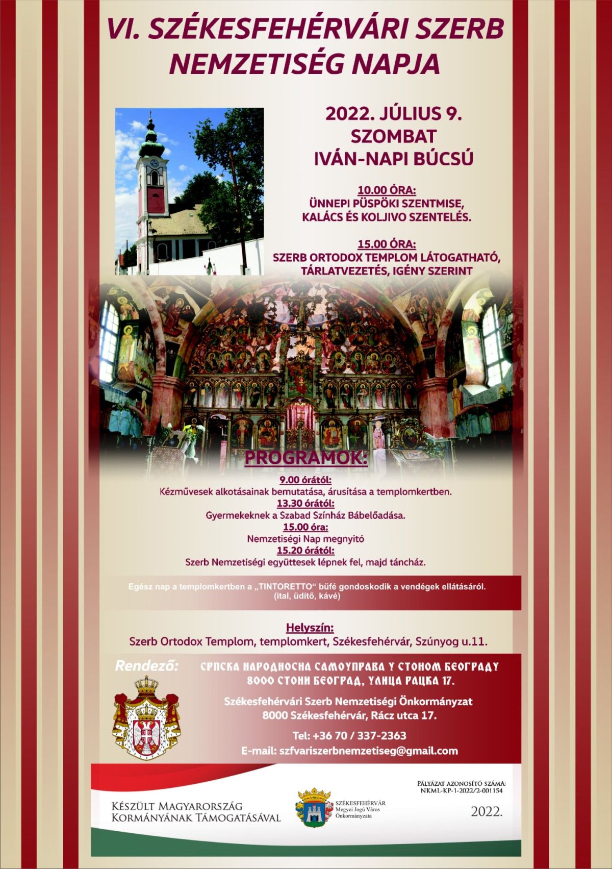 Püspöki Szent Liturgiával kezdődik július 9-én a Székesfehérvári Szerb Ortodox Templom Védőszentjének Ünnepe szombaton délelőtt. A helyi egyházközösség legnagyobb ünnepe minden évben a crkvena slava, vagyis a templom búcsú. Délután a III. Szerb Nemzetiségi Nap programjaira kerül sor, fellépnek szerb és délszláv néptáncegyüttesek és hagyományos szerb ételekkel várják a vendégeket.