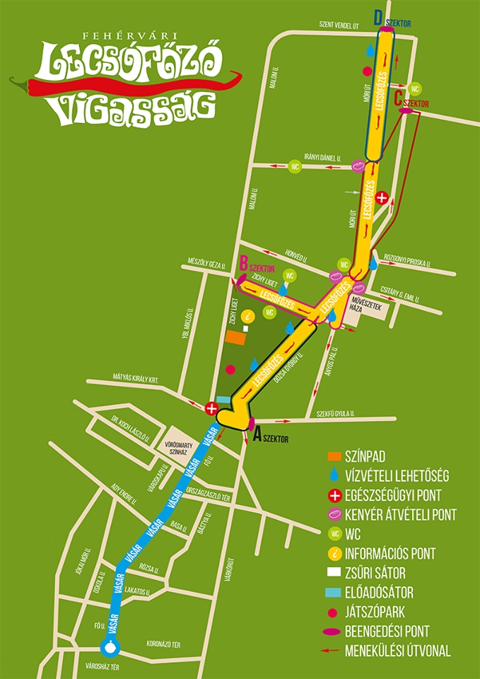 A színes forgatag a Zichy ligetben és a Fő utcán kígyózik tovább, ahol vendéglátósok, kézművesek kirakodóvására várja a fesztivál vendégeit, a lecsófőzők között pedig egész nap zenészek járnak, fokozva a jókedvet. Délelőtt, amíg a főzőverseny zajlik, elsősorban a gyerekeké lesz a liget: gyermekfoglalkoztatóval, játszóházakkal, akadálypályával és egyéb gyerekprogramokkal várják a családokat. A Móri út végén, a főzőhelyek után népi ügyességi játékokban vehetnek részt a felnőttek és gyermekek.