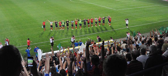 A megnyitott szektorok majdnem teljesen megteltek, kiváló meccshangulatban kezdődött az Európa-liga selejtezőjének visszavágója. Hatalmas taktikai csatában, kevés helyzetet hozó, de végig feszült meccsen megőrizte a számára kedvező eredményt a Vidi, és idegenben lőtt góllal továbbjutott a Slovan Bratislava ellen.