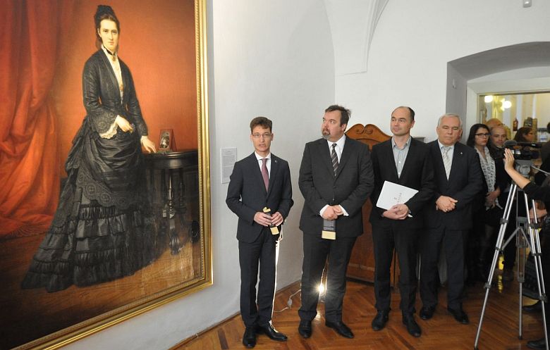 „Mikor a Seuso-kiállítás megnyitóján voltunk, már beszéltem arról, hogy hamarosan újabb műtárgyakat szerzünk vissza mind külföldről, mind magyarországi magántulajdonosoktól a magyar múzeumi intézményrendszer számára. Én akkor már tudtam, hogy licitálni fogunk a Barabás-festményre. Nagy szerencsénk volt, mert a kikiáltási áron sikerült hozzájutni a képhez, 6,6 millió forintért vásároltuk vissza ezt az igen értékes festményt.” – ismertette L. Simon László. A Miniszterelnökség államtitkára hangsúlyozta: nem véletlen, hogy éppen Székesfehérváron mutatják be az alkotást, hiszen a családi kötődések révén hosszú távon is Fejér megyében kerül majd elhelyezésre a monumentális festmény. Kiemelte azt is, hogy nemcsak a műtárgyak, hanem a kastélyok megmentésére is fontos terve van a magyar államnak. „Két hete tárgyalta a kormány a Nemzeti Kastélystratégiát, amelyet a Miniszterelnökség dolgozott ki, és amelynek aktív szakmai partnere a Forster Központ. Ezt a kormány támogatólag küldte vissza azzal, hogy bővítsük ki és még újabb épületeket tegyünk be a 2014-2020-as uniós időszakban felújítandó kastélyok közé, erről novemberben tárgyalnak majd újra. Ez azért is fontos számunkra, mert a felújítandó kastélyok zöme Fejér megyében található. Ennek az az oka, hogy a magyar történelem sajátosságainak köszönhetően a Dunántúlon és azon belül is Fejér megyében alakult ki egy olyan birtokszerkezet, aminek köszönhetően nagy főúri kastélyok épültek itt, amelyek mögött mindenhol erős gazdaság és sok kulturális érték állt.”