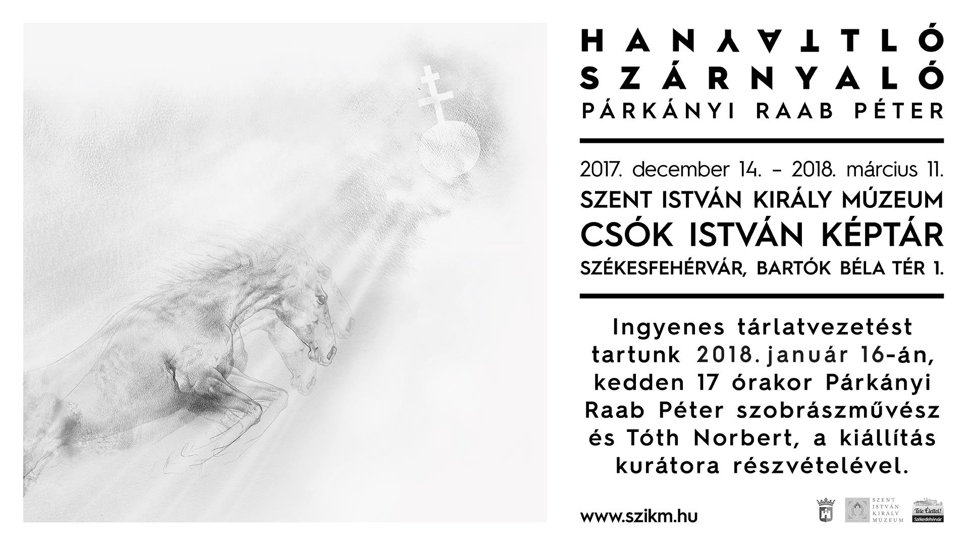 Januárban is folytatódnak az ingyenes tárlatvezetések a Szent István Király Múzeum legújabb kiállításához kapcsolódóan. 2018. január 16-án, kedden 17 órai kezdettel a kiállító művész, Párkányi Raab Péter és a kurátor, Tóth Norbert mutatja be az alkotásokat az érdeklődőknek a Csók István Képtárban.