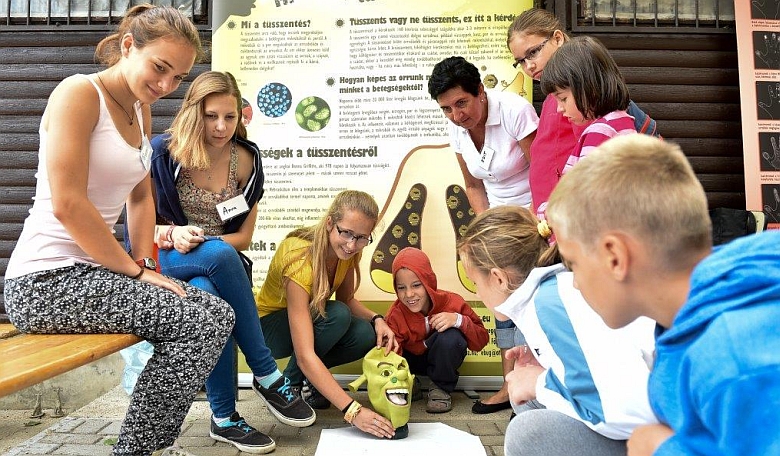 Az e-Bugot a Napraforgó Városi Napközis Táborban nyaraló gyerekek is megismerhetik a Fejér Megyei Kormányhivatal Népegészségügyi Főosztálya közreműködésével. A diákok három panel és rendkívül játékos, kreatív gyakorlati bemutatók segítségével nyernek bepillantást a programba, elsajátítják a személyi higiénére, a védőoltásokra, a felelősségteljes antibiotikum-használatra vonatozó alapvető ismereteket. A „Mikrobamánia” című szekcióban a hasznos és ártalmas vírusokról, baktériumokról és gombákról, a ”Rémisztő kezek” fejezetben a kórokozók terjedéséről és a kézmosás fontosságáról kapnak információkat, míg a harmadik, „Szupertüsszentés” című szekcióban számos érdekességet tudnak meg a tüsszentésről, a szervezet védekező mechanizmusáról. Például az egyik gyakorlat során fluoreszkáló krémmel kenik be egy kisgyermek kezét, aki aztán megérinti a többieket, így pontosan szemléltethető, hogy egy kézfogással miként terjednek a kórokozók, és egy egyszerű kézmosással miként előzhetőek meg a betegségek. A tüsszentésről szóló fejezetbe bevonják Shrek-et is, aki megmutatja, hogy egy jól irányzott tüsszentéssel a láthatatlan kórokozók miként terítenek be egy egész osztálytermet, és hogyan tudnak a megbetegedések gyorsan elterjedni. – mondta el az e-Bug csütörtöki bemutatóján Dr. Pásztor László, az FMK NF egészségfejlesztési koordinátora. A szakember hangsúlyozta: a program arra is megtanít, hogy csak akkor szedjünk antibiotikumot, amikor kell, illetve addig és olyan dózisban, ahogy szükséges.