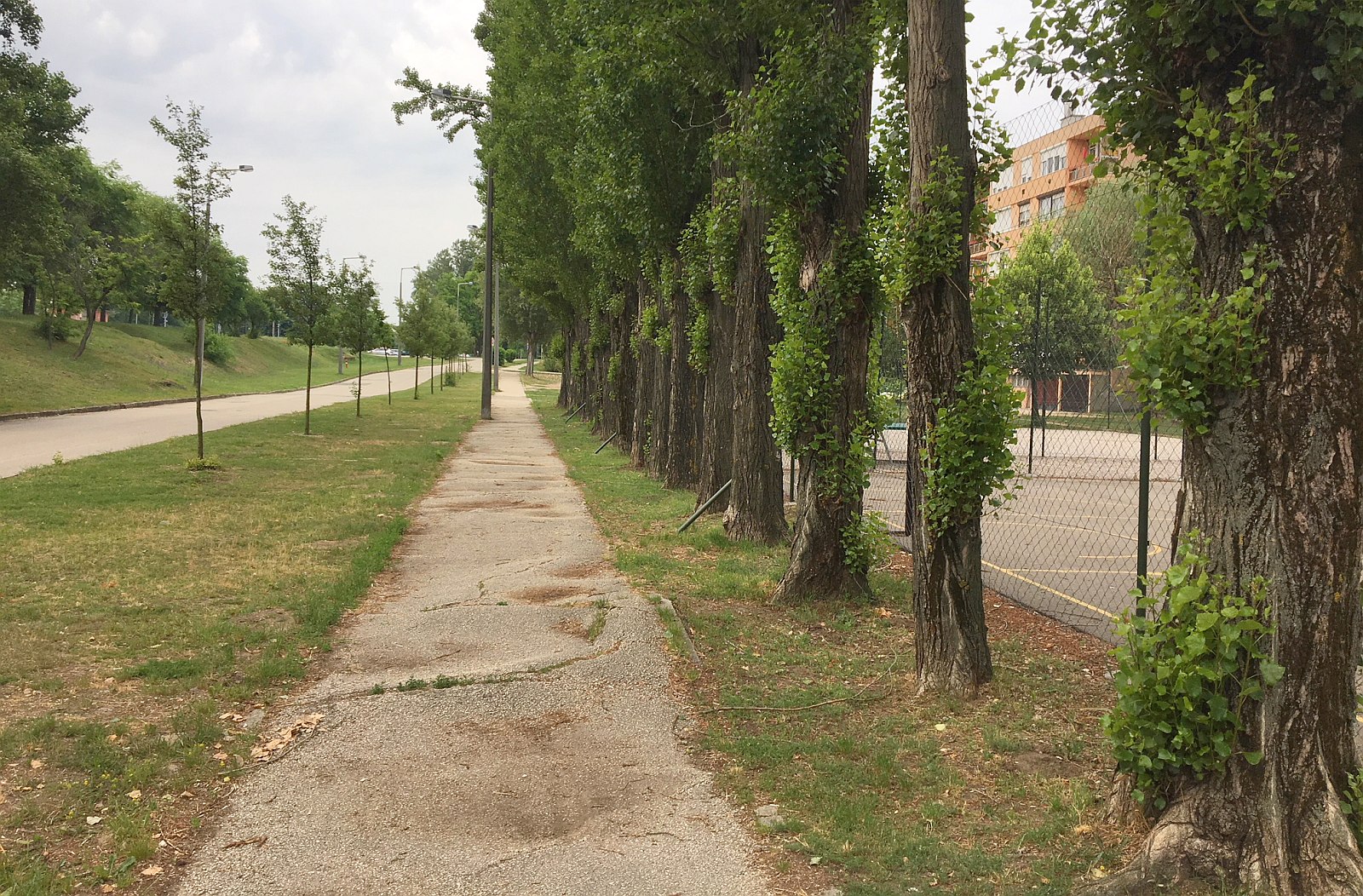 A sportpálya és a járda között összesen 25 nagy átmérőjű, de elöregedett, törékeny és veszélyes ágakkal rendelkező nyárfa található. Nemrégiben lakossági fórumot tartottak a témában, ahol a lakók döntő többsége támogatta, hogy a járdafelújítással összhangban ezeket a nyárfákat ki kell sajnos vágni, mert veszélyesek már a gyalogos közlekedésre.