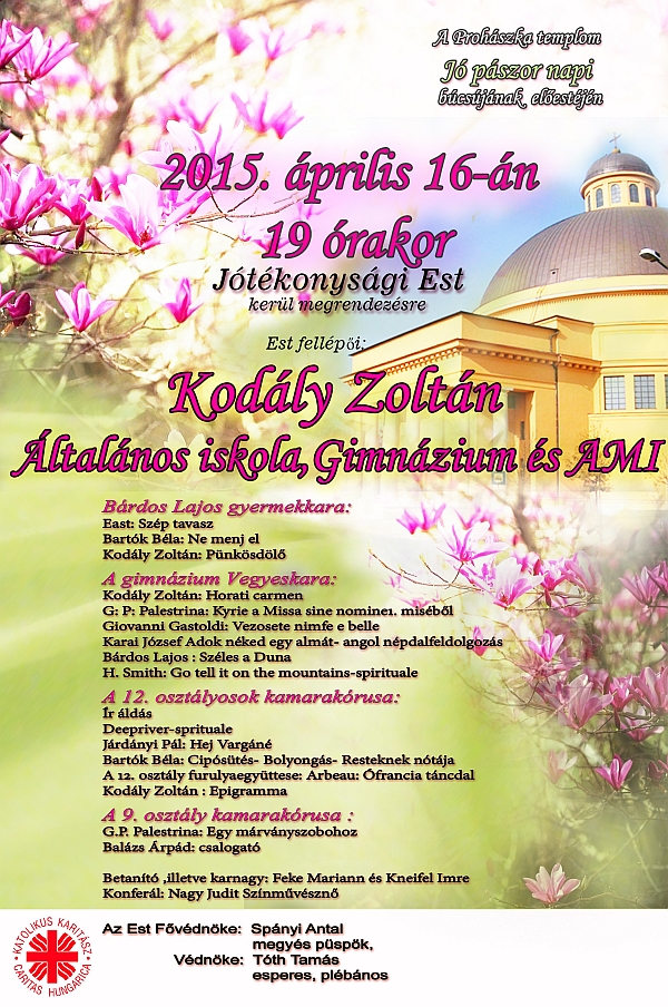 Szombaton a Karitász Csoport szervezésében jótékonysági koncertre kerül sor, melyen kodályos diákok lépnek fel, míg Jó Pásztor Napján, azaz vasárnap reggeltől egészen délutánig érdekes programokkal várják mind a gyerekeket, mind a felnőtteket!
