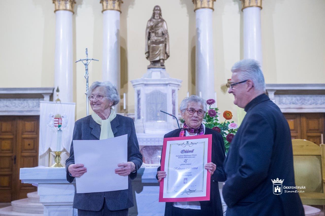 „A csend gyümölcse az ima. Az imádság gyümölcse a hit. A hit gyümölcse a szeretet. A szeretet gyümölcse a szolgálat.” - kezdte ünnepi köszöntőjét Kalkuttai Szent Teréz anya idézettel Mészáros Attila. „Azt gondolom, hogy ebben a négy mondatban minden benne van, amit a Karitász-csoportról érzünk, látunk, hallunk és gondolunk.” - hangsúlyozta Fehérvár alpolgármestere, aki a város közössége nevében megköszönte az elmúlt 25 esztendőt mindazoknak, „akik elkezdték, akik folytatták és akik mindmáig segítik a rászorulókat”, majd Dr. Cser-Palkovics András, polgármester aláírásával ellátott Emléklapot adományozott a közösség részére, elismerve a csoport vezetőinek, önkénteseinek áldozatos munkáját, szociális és karitatív tevékenységüket.