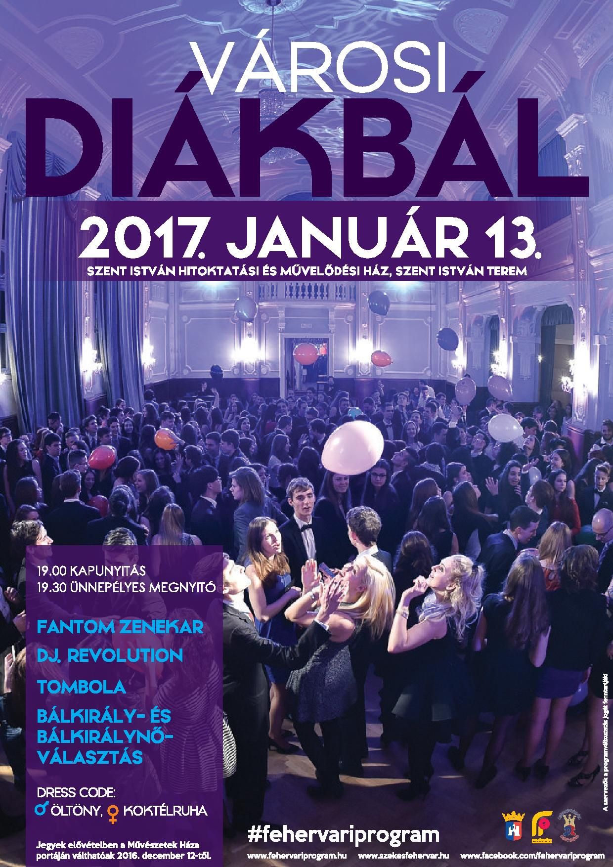 Január 13-án már harmadszor lesz Városi Diákbál, ahol Székesfehérvár különböző iskoláiba járó diákok találkozhatnak egymással és a báli hagyományoknak megfelelően szórakozhatnak. A Szent István Hitoktatási és Művelődési Ház kapuit 19 órakor nyitják, az ünnepélyes megnyitó 19.30 órakor kezdődik.