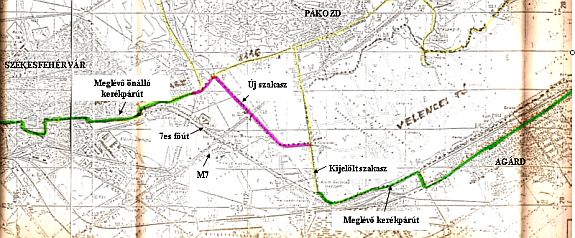 A kisfaludi buszfordulóig 2002-ben készült el a kerékpárút, onnan Pákozd irányába az út mellett folytatódik majd. A beruházás része, hogy biztonságos átkelőhelyet építenek a bicikliseknek a vasúti átjáróban, majd az út kastély felöli oldalán a Császár-vízig halad a kerékpárút. Ott elkanyarodik a patakmeder töltésére és azon egészen Dinnyésig mehetnek majd a biciklisek. Az autópálya alatt úgy halad át az út, hogy a patakmedret megosztják és az egyik felében a biciklisek közlekedhetnek majd.