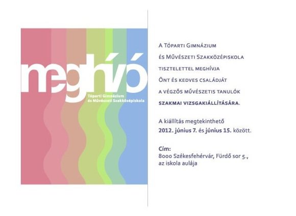 Hagyományosan közös kiállításon mutatják be a Tóparti Gimnázium és Művészeti Szakközépiskola aulájában a végzős művészetis diákok vizsgamunkáit. Idén is igazán változatos anyag gyűlt össze, önállóan kivitelezett, egyedi tervek alapján készült, kiérlelt munkákat láthatnak a látogatók. A tárlaton a grafika, a kerámia és a textil szakon végzős művészetis tanulók vizsgamunkái tekinthetőek meg június 7-e és 15-e között az iskola aulájában.