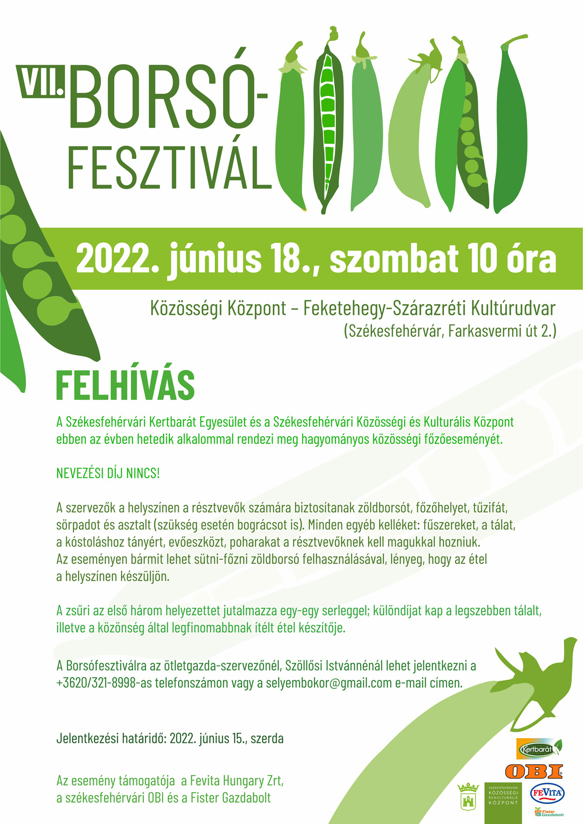 Az immár hetedik alkalommal megszervezett Borsófesztiválon hagyományosan bármit lehet sütni-főzni zöldborsó felhasználásával, lényeg, hogy az étel a helyszínen készüljön.