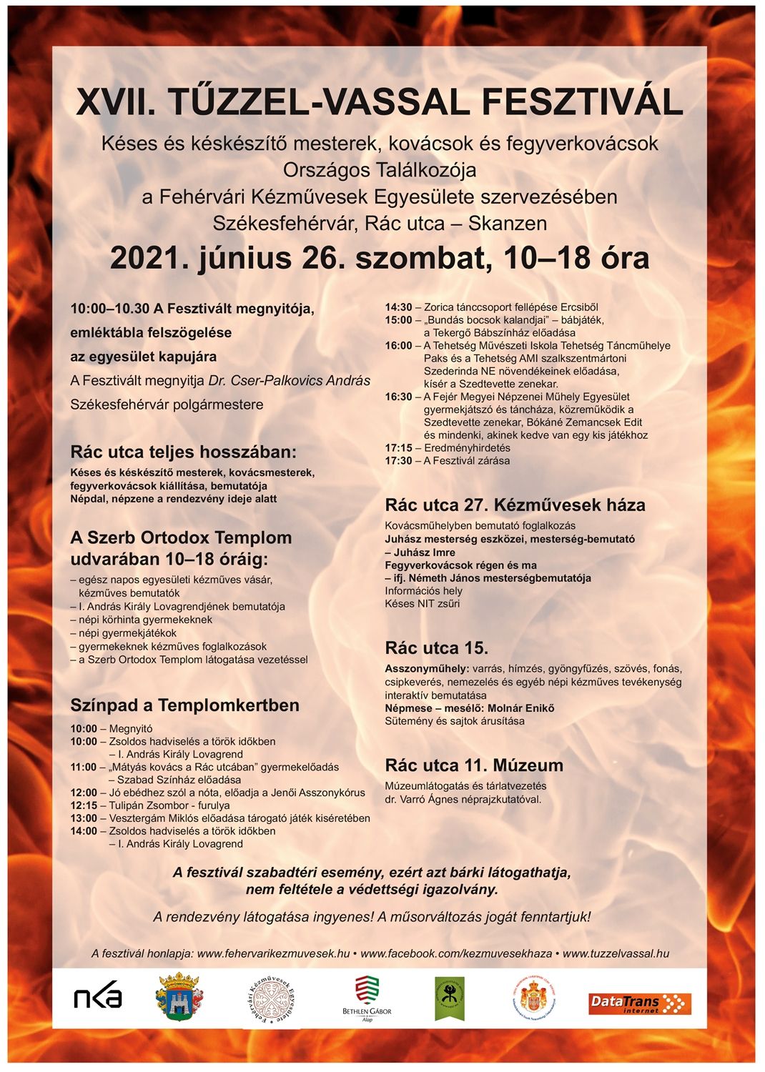 A koronavírus-járvány miatt tavaly elmaradt a Tűzzel-Vassal Fesztivál, az enyhítések azonban lehetővé teszik, hogy idén már megtartsák a közkedvelt rendezvényt. Június 26-án rendezik a fesztivált, melynek keretében ezúttal kizárólag szabadtéri programok lesznek.