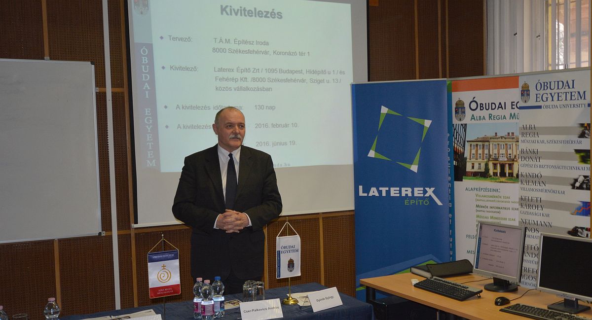 Györök György dékán kiemelte, a fejlesztés egy igen jó nyitány annak érdekében, hogy Fehérváron versenyképes felsőoktatás legyen, majd megköszönte a közreműködő szervezetek partnerségét.