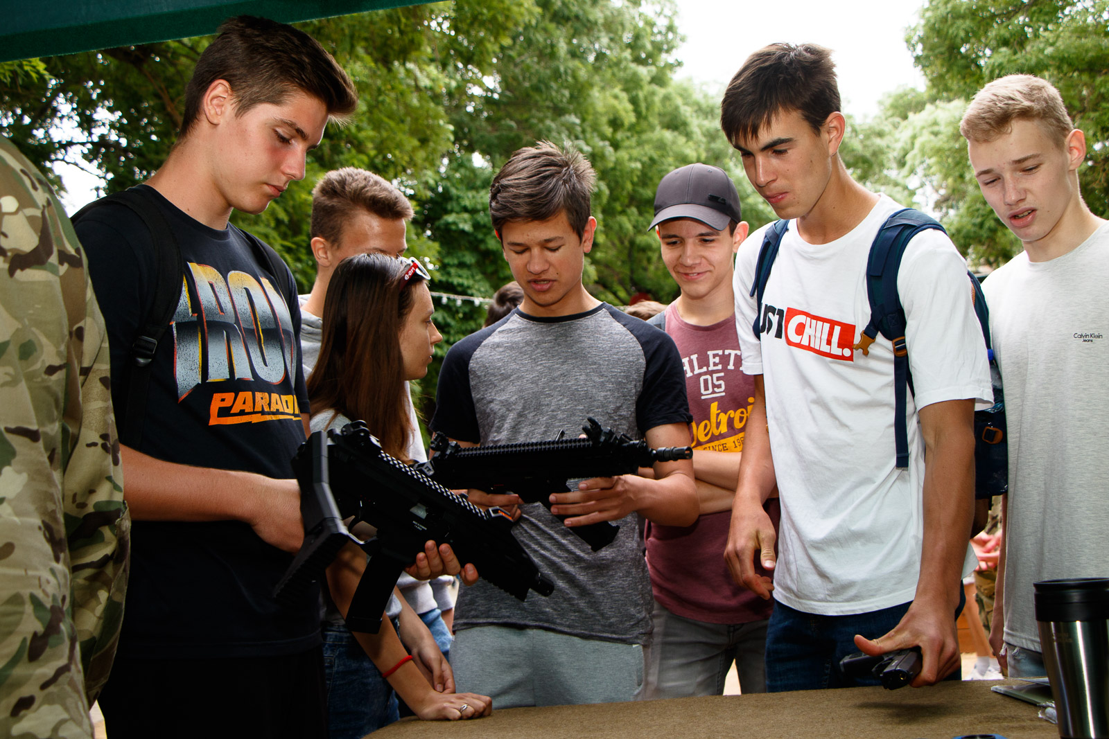 Kézbe vehették például a CZ fegyvercsalád újabban bevezetésre került tagjait. Például a CZ Bren 2-es típusú gépkarabélyt, de a CZ P-09-es típusú maroklőfegyver működését is ,,tanulmányozhatták”. – Láthatóan jelentős az érdeklődés: a fiatalabbakat a fegyverek használata érdekli, az idősebb korosztály az alakulatunkhoz való csatlakozás lehetőségeiről faggat bennünket – osztotta meg tapasztalatait Bódi Tibor főtörzsőrmester, szakasz altiszt, aki bajtársaival szünet nélkül mutatta be a kiállított fegyverzettechnikát a több száz kíváncsi szemnek.