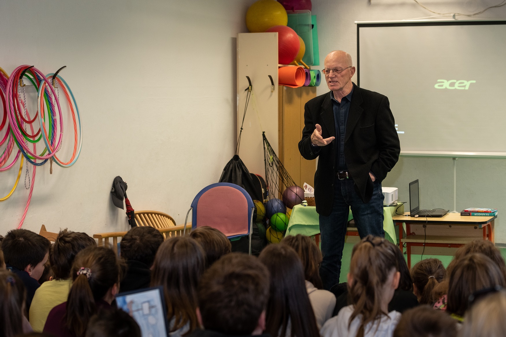 Csütörtökön fogadták az iskolában a világhírű sportolót, aki a teljes negyedik évfolyam számára tartott előadást páratlan életútjáról, a valósággá lett álmairól, az indulásról, az öt hajóútjáról, sikereiről, kudarcairól, megmérettetéseiről és a tanulás fontosságáról.