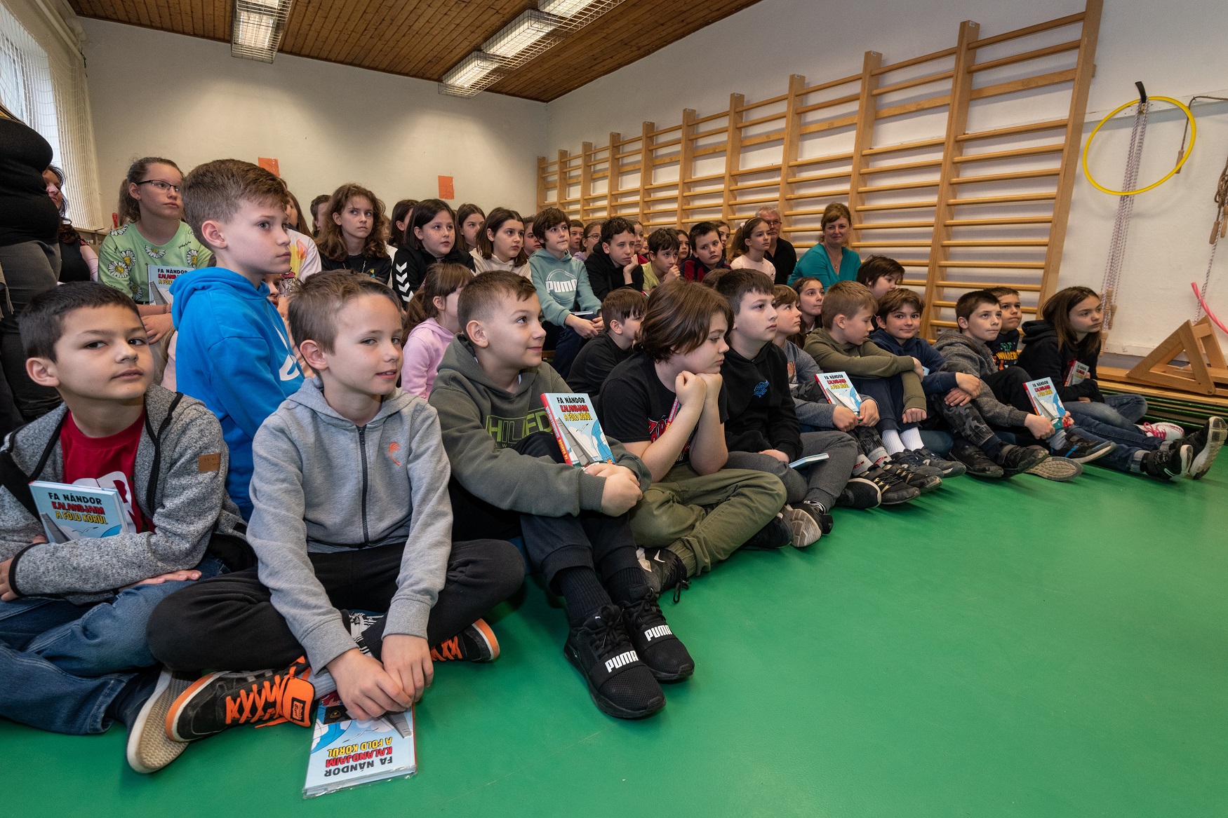 A videóvetítéssel egybekötött, vidám hangulatú eseményen a gyerekek szavalattal köszöntötték Fa Nándort, és zárásként kérdezhettek is.