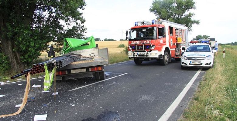 Vascsöveket szállító kisteherautó és egy pótkocsis tehergépkocsi ütközött július 14-én, kedden délelőtt a 81-es főúton, Söréd és Csókakő között. A dobozolt autóalkatrészeket szállító, pótkocsis jármű az út menti árokba hajtott, az üzemanyagtartálya megrongálódott, amelyből gázolaj folyt a burkolatra. A kisteherautó keresztbe fordult az úton.