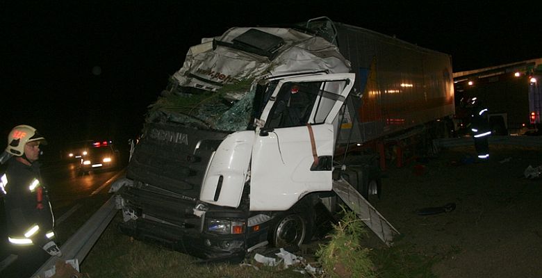 A tűzoltók szabadították ki annak a kamionnak a sofőrjét, amely szalagkorlátnak ütközött július 14-én, kedden hajnalban az M7-es autópályán. A Balaton felé haladó, darált napraforgót szállító kamion a szabadbattyáni lehajtó közelében átszakította a belső szalagkorlátot és a két pályatest között i zöldsávban állt meg. A rakomány nagy rész kiömlött.