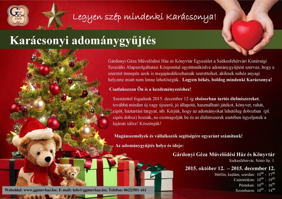 Karácsonyi adománygyűjtés a Gárdonyi Géza Művelődési Házban