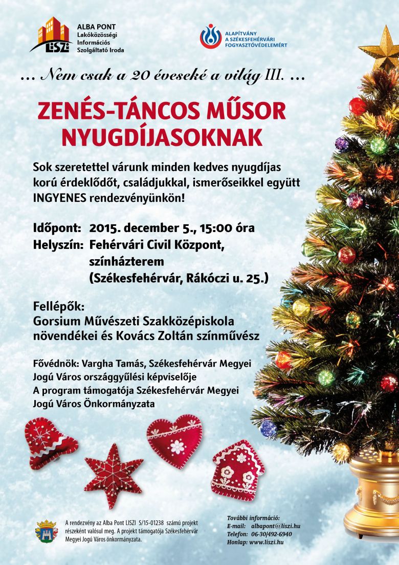 Fennállása óta harmadik alkalommal szervez gálaműsort a szépkorúaknak az Alba Pont LISZI. A Nem csak a 20 éveseké a világ című rendezvényre 2015. december 5-én kerül sor a Fehérvári Civil Központ színháztermében. A zenés-táncos program résztvevőit Vargha Tamás, Székesfehérvár országgyűlési képviselője köszönti majd.
