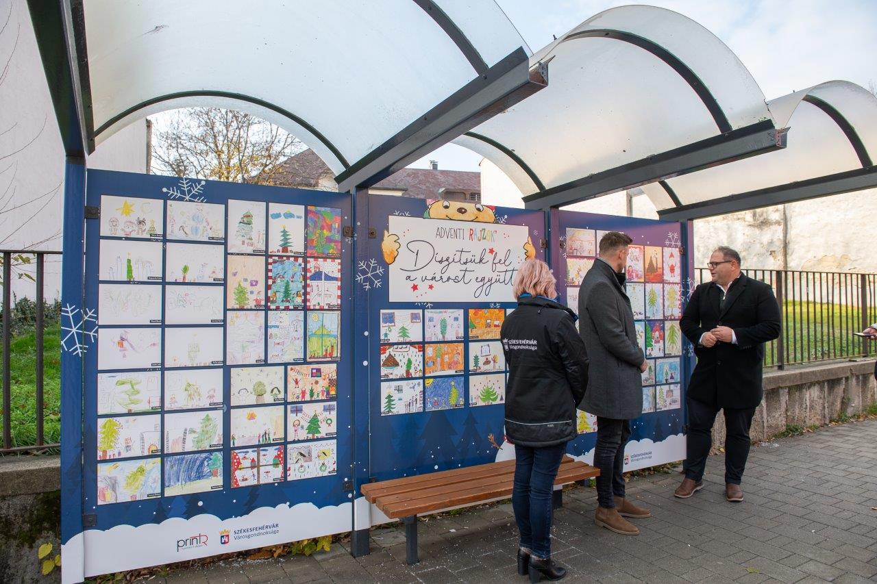 Tavaly korábbi adventi fényképek díszítették a Várkörúton az Országzászló téri buszmegállókat, idén pedig a PrinteR Nyomda felajánlásának köszönhetően gyermekrajz pályázat munkái teszik hangulatossá advent idején ezeket a buszmegállókat - mondta Mészáros Attila alpolgármester. "Sok gyermekrajz érkezett, majd 400 összesen, amik a gyerekek karácsonyi emlékeit, érzéseit mesélik el. Köszönöm a PrintR Nyomdának a felajánlást és a Városgondnokság munkáját, hogy a gyerekek alkotásai teszik még szebbé a Fehérvári Adventet. Arra bíztatok mindenkit, hogy nézzék meg a rajzokat a buszmegállókban, az Országzászló téren és a Zichy ligetben."