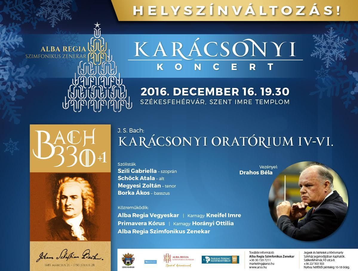 Johann Sebastian Bach Karácsonyi Oratóriuma műfajában a leghíresebb, amely a karácsony históriáját, Krisztus születésének történetét meséli el. Hat kantátájából az első hármat tavaly, a Bach 330 emlékév keretében szervezett ünnepi koncertjén adta elő az Alba Regia Szimfonikus Zenekar. Az idei programon a negyedik, ötödik és hatodik kantáta csendül fel. Az estre december 16-án, pénteken 19.30 órától kerül sor, az előzetesen meghirdetett helyszín, a Bazilika helyett a Szent Imre templomban.