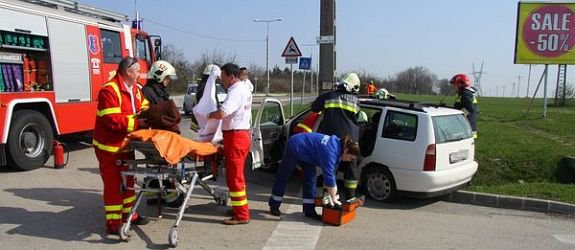 A Béla úton a Nagyszombati utca kereszteződésében egy Suzuki Swift és egy Volkswagen Polo ütközött. A Volkswagen kidöntötte az út szálán álló stoptáblát. Az autó sofőrjét a mentők a tűzoltók segítségével emelték ki a kocsiból, majd kórházba szállították.