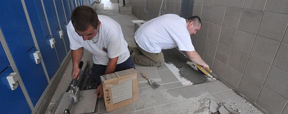 Nagyon fontos volt már felújítani a medencetér mozgatható falát, mert eltörtek a szélei és nem lehetett használni. A burkolók az uszoda egész területén végeznek javításokat, hiszen több helyen veszélyessé vált már a járófelület. Ezeket a részeket lehetőség szerint ugyanolyan járólappal pótolják. A medence alatt található gépházban pedig a csövek javításán túl a három keringető szivattyút is kicserélték. A korábbi szivattyúkhoz, melyek még az uszoda építésekor készültek nem lehetett már alkatrészeket beszerezni és energiatakarékosság szempontjából sem voltak korszerűek.