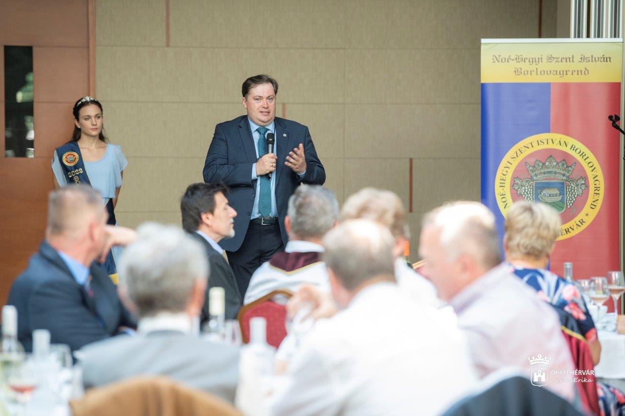 Úgy fogalmazott: „A királyok városa minden évben barátsággal látja vendégül a borrendeket! Együtt tudjuk folytatni a hagyományt, együtt tudjuk folytatni értékeink őrzését. Habár Fehérvár most nem a boráról híres, de mind a mai napig láthatóak a város legrégebbi fennmaradt házának földszintjén a középkori borkimérések helyei. Ezekben a napokban pedig azt az időszakot igyekszünk megeleveníteni a középkori történelmi fesztiválon itt, a Belvárosban. Az Öreghegyen pedig még mindig élő a borkultúra, vannak pincék és díjnyertes borokat is készítenek, ezért is öröm, hogy ebben az évben mindkét rendezvényt láthatják a Kárpát-medence minden részéből érkezett vendégeink.”