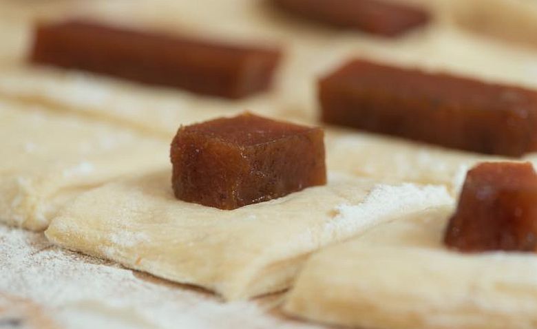 „A tölteléknek csak a fantázia szab határt. Lehet bele rakni citromos, narancsos rumaromás diót, kakaót, sőt még szilvát is. Ezekre úgy jöttem rá, hogy torkoskodtam, mert szeretek ízekkel kísérletezni, főleg amióta nyugdíjas vagyok. Az éjjel azt álmodtam meg, hogy a buktába gyümölcsíz helyett házi birsalmasajtot teszek.” – nevetett csibészesen Kata néni, és máris mutatóujjnyi vastagra szeletelte a tölteléknek szánt barnás, szegfűszeges illatú, kocsonyás rudat, aminek az elkészítését az internetről tanulta meg. A kis szeletek a tésztanégyzeteket középen majdnem teljesen végigérték. Egy gyors tekerés után katonásan már landoltak is a kiolajozott tepsiben.