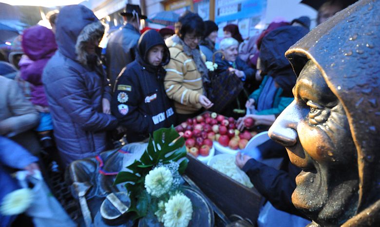Katalin napi ünnepség savanyú káposztával és zsíros kenyérrel a Liszt Ferenc utcában