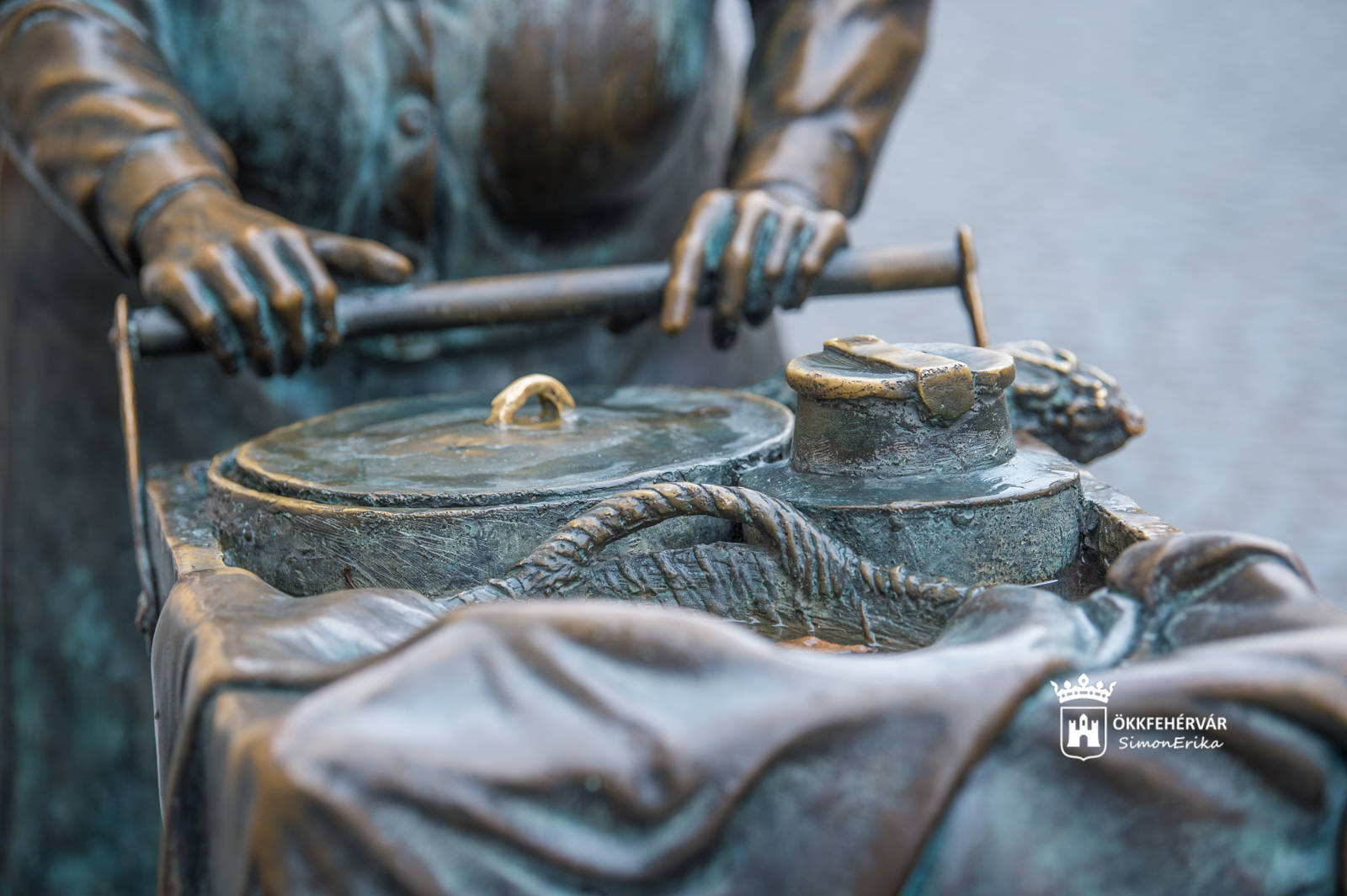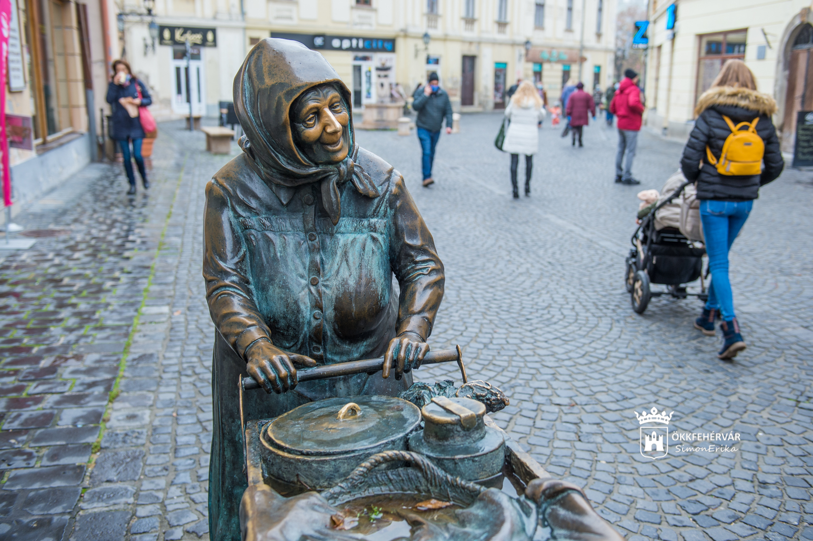 Nagyon élő piac volt, ennek az emlékére készítettem a szobrot. Kati néni hazafelé tart a Felsővárosba, szimbolizálva, hogy megszűnt a régi piac, a múltunknak egy része lezárult.