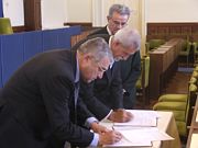 A Honvédség és Társadalom Baráti Kör (HTBK) Székesfehérvári Szervezete ünnepélyes keretek között írta alá ma együttműködési szerződését az Isonzo Baráti Körrel. Warvasovszky Tihamér polgármester, mint a HTBK elnöke beszélt az egyesület általános és konkrét céljairól, ez utóbbiak közé tartozik a Doberdo kápolna felújítása. "Fontos, hogy a fiatalokban erősítsük a hazaszeretet eszméjét és az is, hogy ők is megismerhessék a katonai hagyományokat" - mondta Warvasovszky Tihamér, aki az olasz vendégek előtt kiemelte Székesfehérvár kulcsfontosságú szerepét a Magyar Honvédség életében.