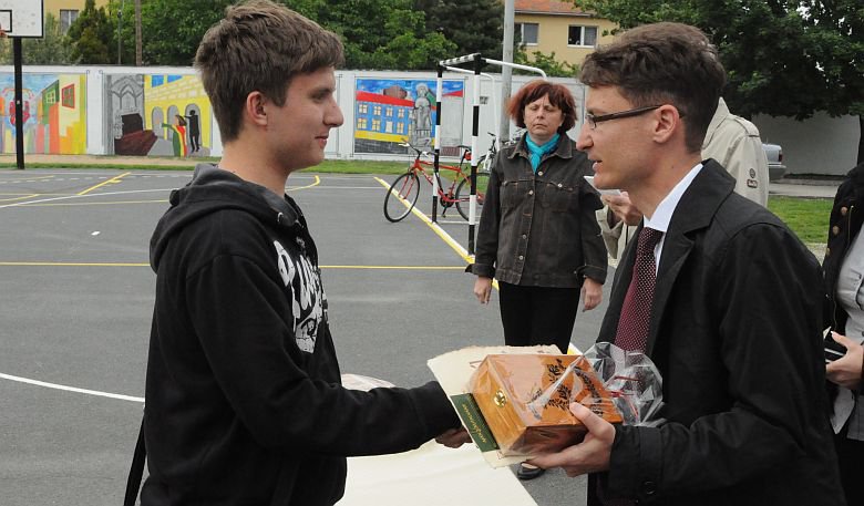 A Szent István Emlékév egyik fiataloknak szóló versenyének díjait a város polgármestere Cser-Palkovics András adta át a diákoknak.