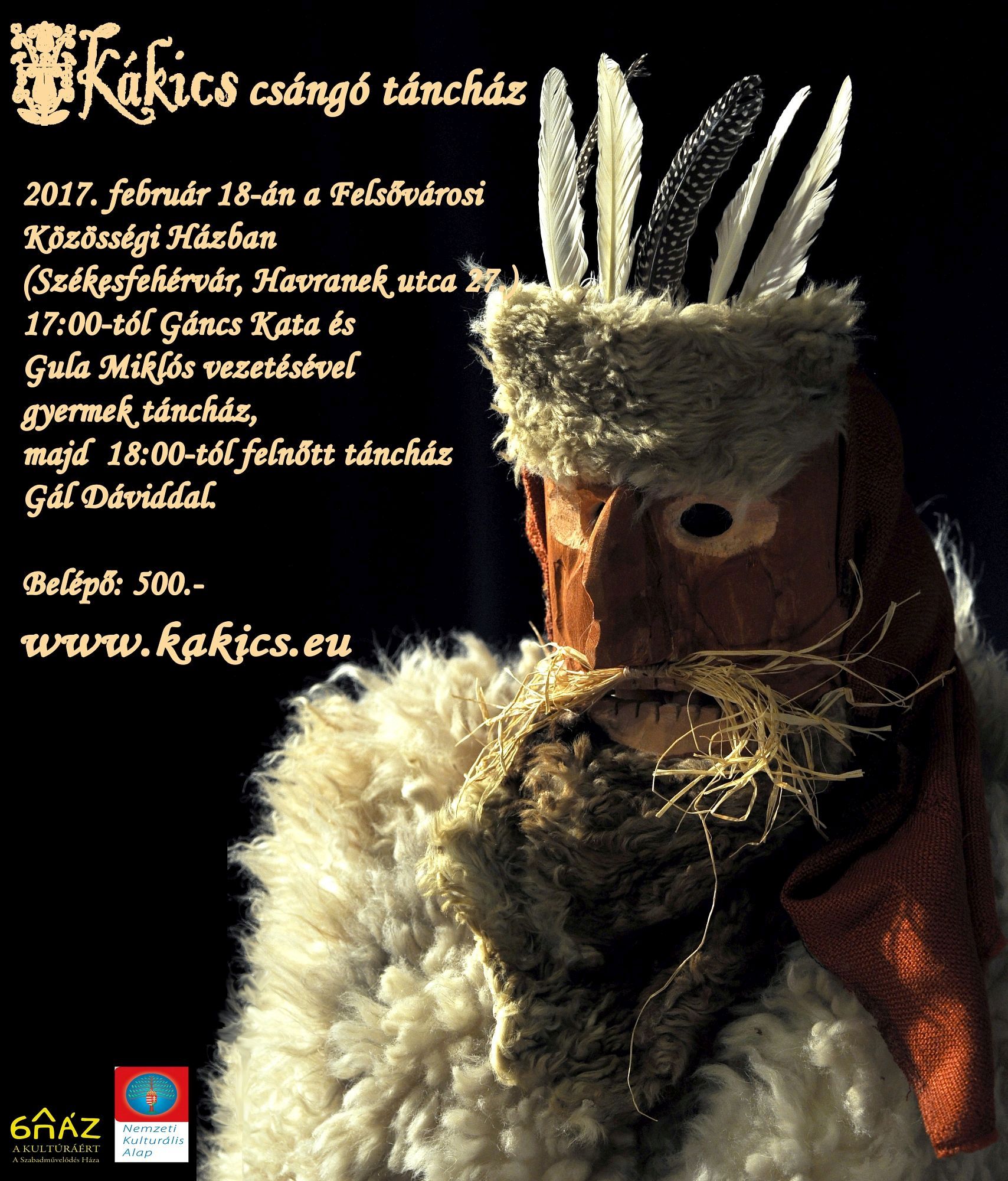 Farsangi mulatságba invitálja régi és új táncházas tagjait a Kákics együttes február 18-án, szombaton. A program 17.00 órakor kezdődik a Felsővárosi Közösségi Házban, ahol először hagyományosan Gáncs Kata és Gula Miklós tanítja a gyerekeket. Lesznek farsangi játékok, köztük kecsketáncoltatás moldvai módra, de lehetséges, hogy medvét is ugráltatnak, ahogy a gyimesi csángók szokták. Nagy a valószínűsége, hogy az ósdi állatosdi sem marad el.